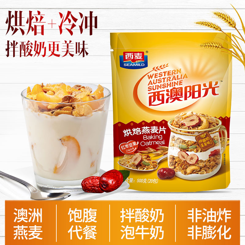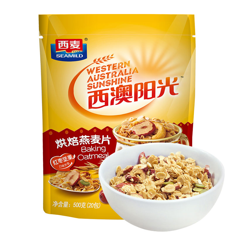 西麥 燕麥片 西澳陽(yáng)光 營(yíng)養(yǎng)早餐食品 酸奶好搭檔 即食 冷沖紅棗堅(jiān)果烘焙干脆麥片500g (25-20小袋)獨(dú)立包裝