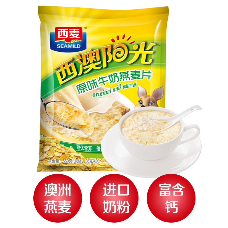 西麥 燕麥片 西澳陽光 營養(yǎng)早餐食品 即食 原味牛奶谷物代餐麥片560g(28g-20小袋)獨立包裝