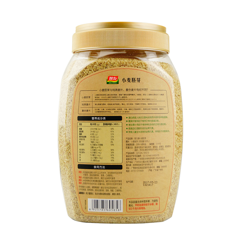 智力 小麥胚芽胚芽粉 969g 胚芽片即食高纖富硒純雜糧代餐粉