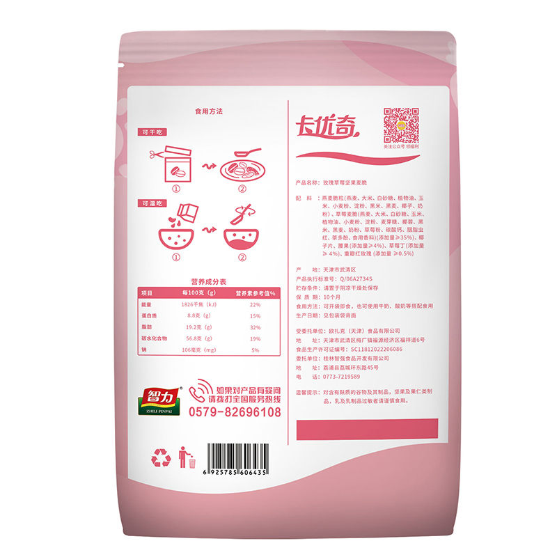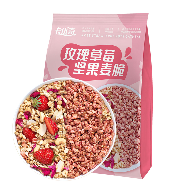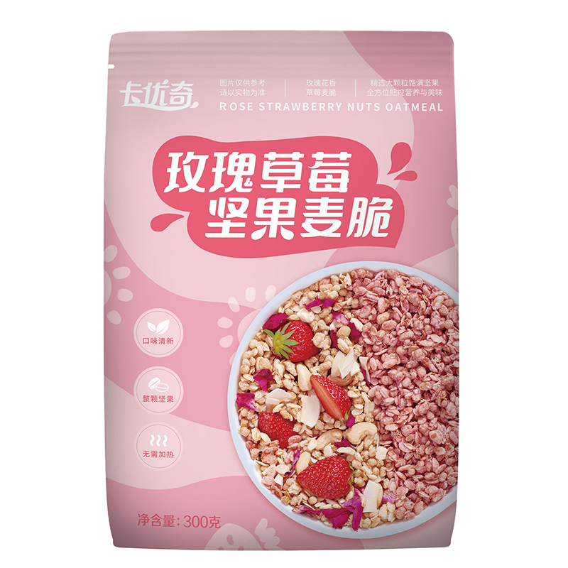 智力卡優(yōu)奇水果堅果麥脆300g免煮學生營養(yǎng)早餐即食干吃燕麥代餐 玫瑰草莓麥脆