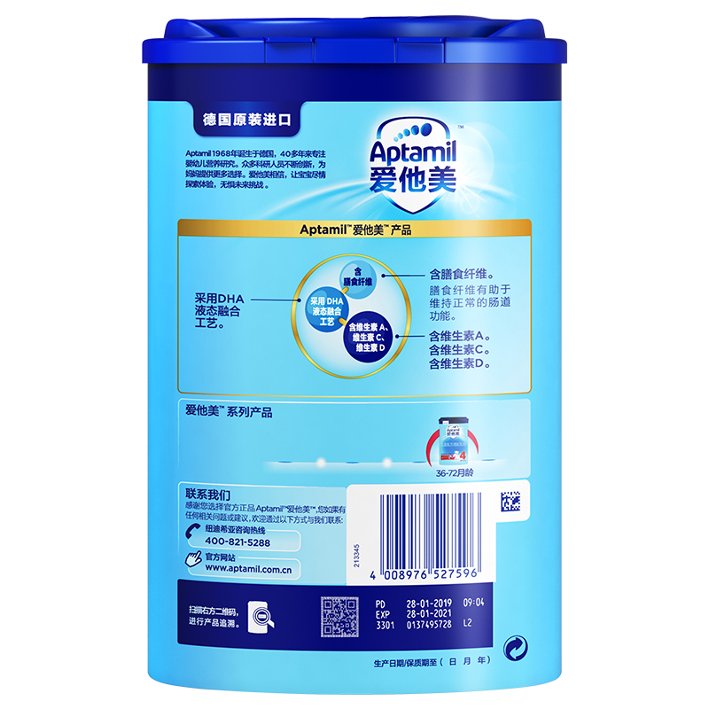 愛(ài)他美(Aptamil) 兒童配方奶粉(36–72月齡,4段)800g