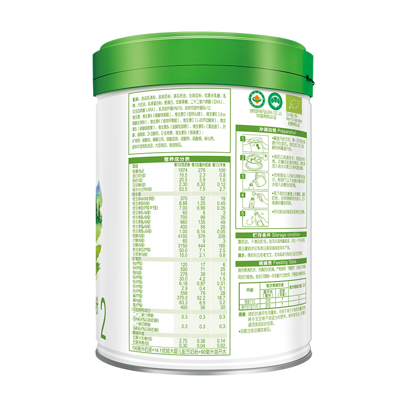伊利奶粉 金領(lǐng)冠系列 塞納牧較大嬰兒有機配方奶粉 2段800g(6-12個月適用)