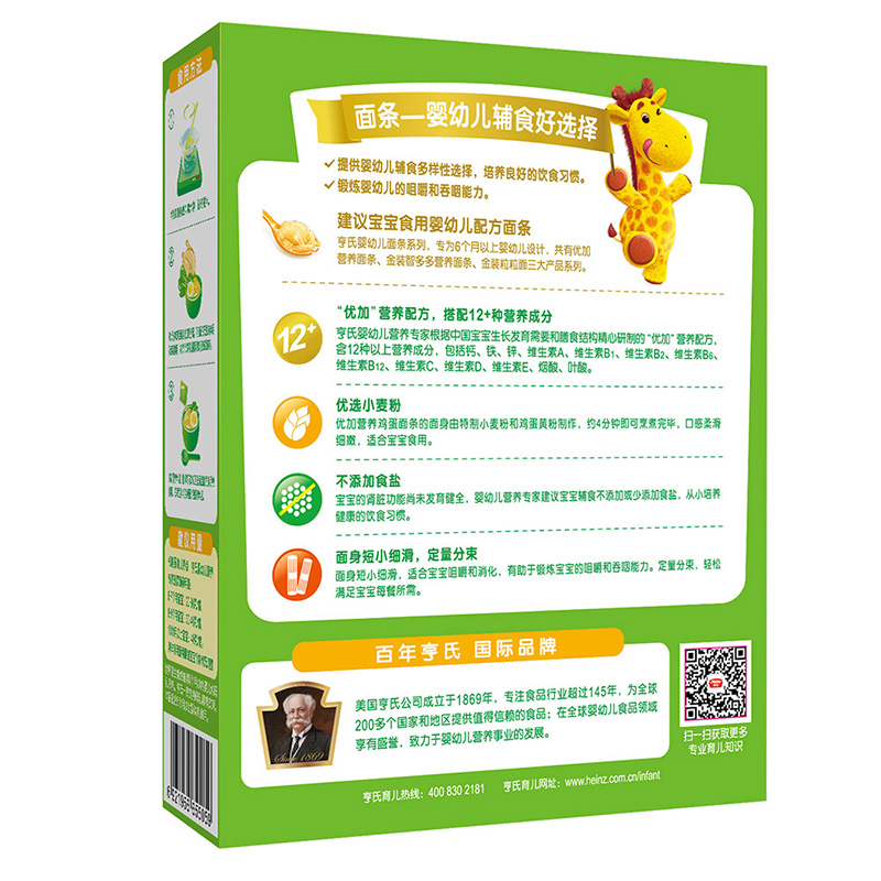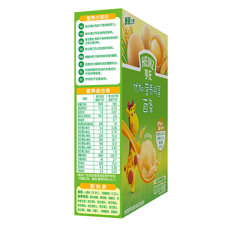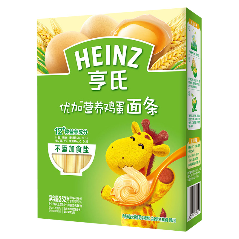 亨氏 (Heinz) 1段嬰幼兒輔食 優(yōu)加寶寶面條 含雞蛋 寶寶營養(yǎng)面條252g(無鹽)(輔食添加初期-36個月適用)