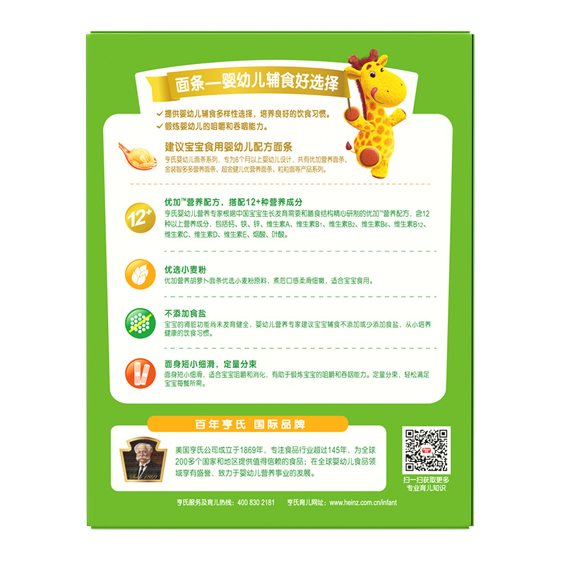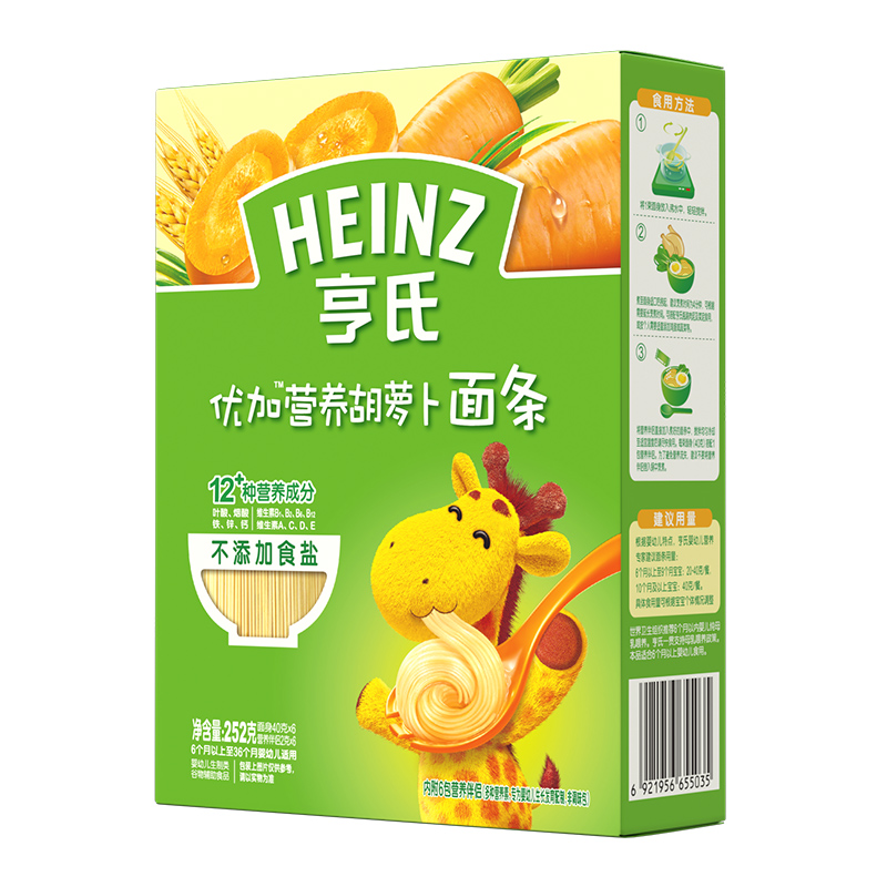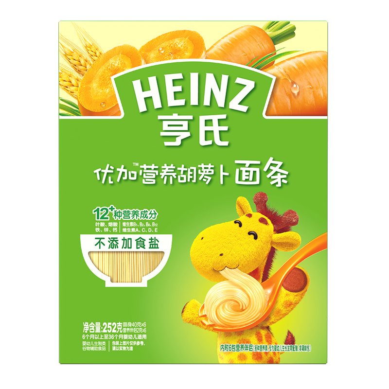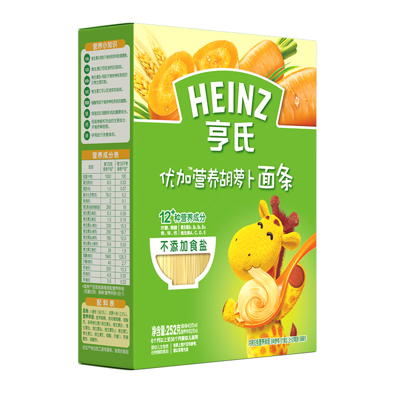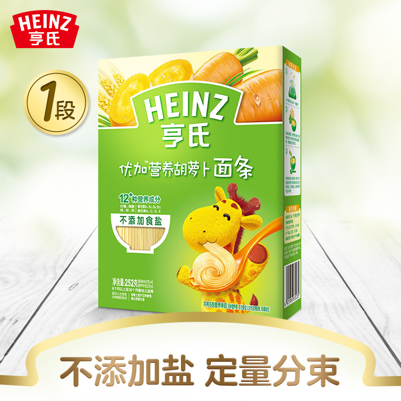 亨氏 (Heinz) 1段 嬰幼兒輔食 優(yōu)加寶寶面條 含胡蘿卜 寶寶營養(yǎng)面條252g(無鹽)(輔食添加初期-36個(gè)月適用)