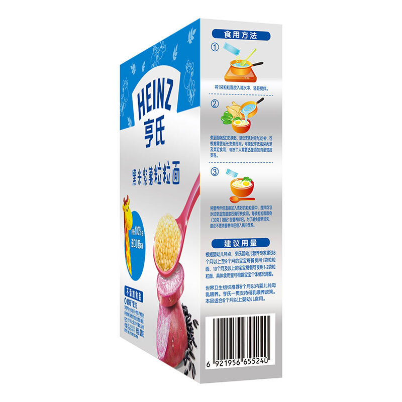 亨氏 (Heinz) 2段嬰幼兒輔食 金裝粒粒面 含黑米紫薯 寶寶營養(yǎng)顆粒面320g(無鹽)(輔食添加初期-36個(gè)月適用)