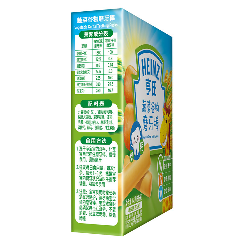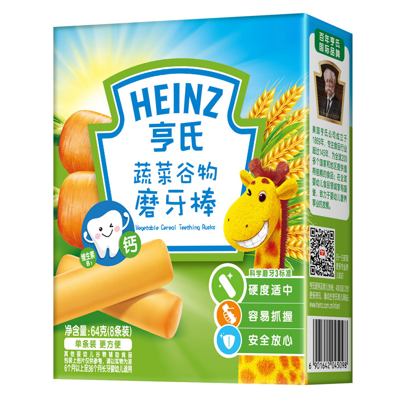 亨氏 (Heinz) 1段 嬰幼兒輔食 蔬菜 寶寶零食磨牙棒64g(輔食添加初期-36個(gè)月適用)