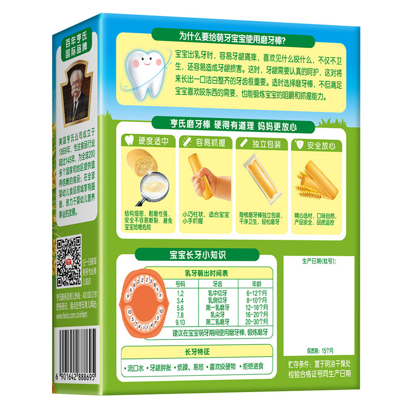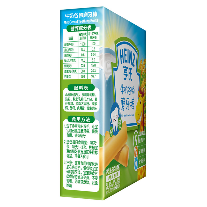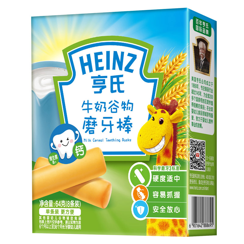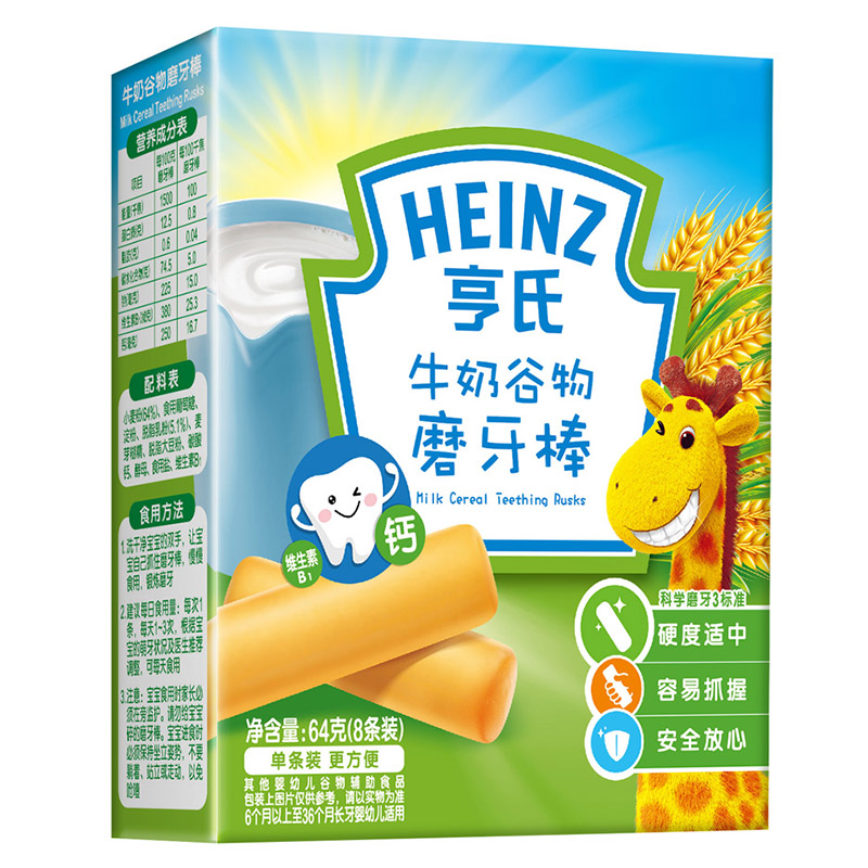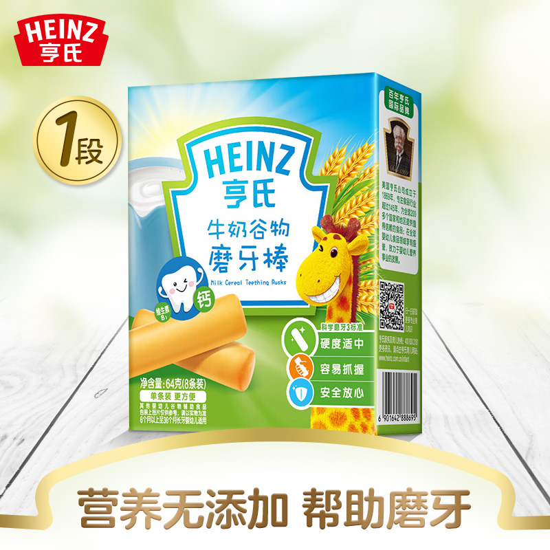 亨氏 (Heinz) 1段 嬰幼兒輔食 牛奶 寶寶零食磨牙棒64g(輔食添加初期-36個月適用)