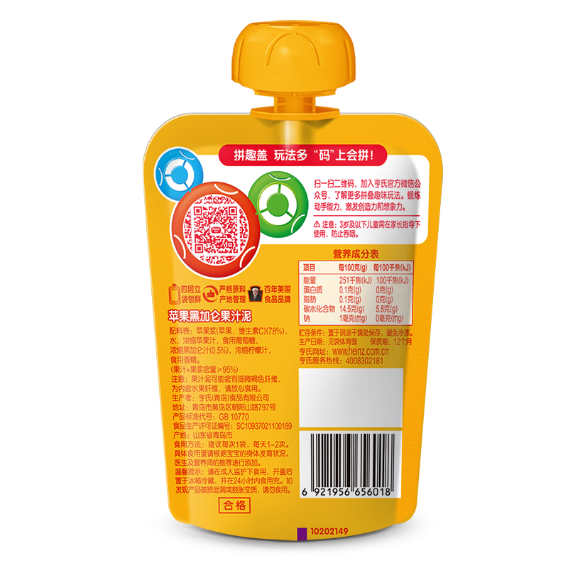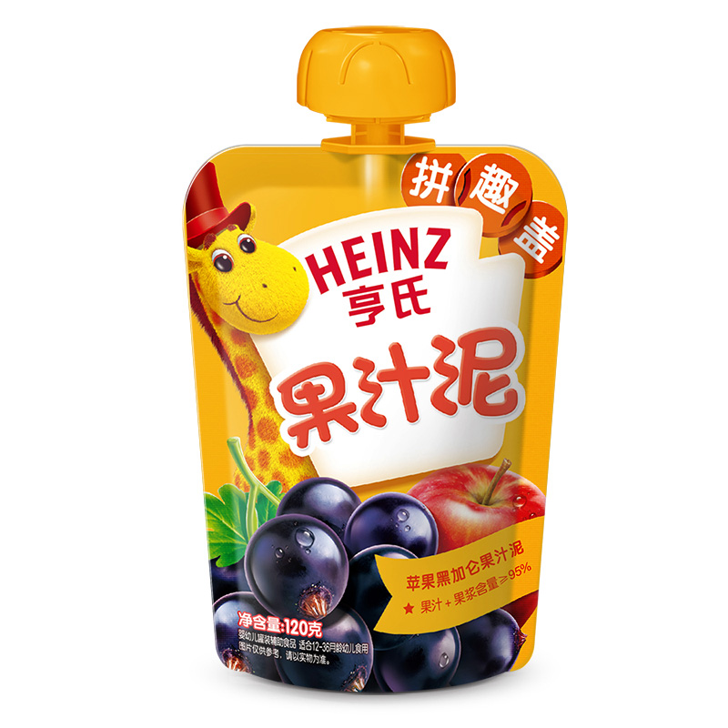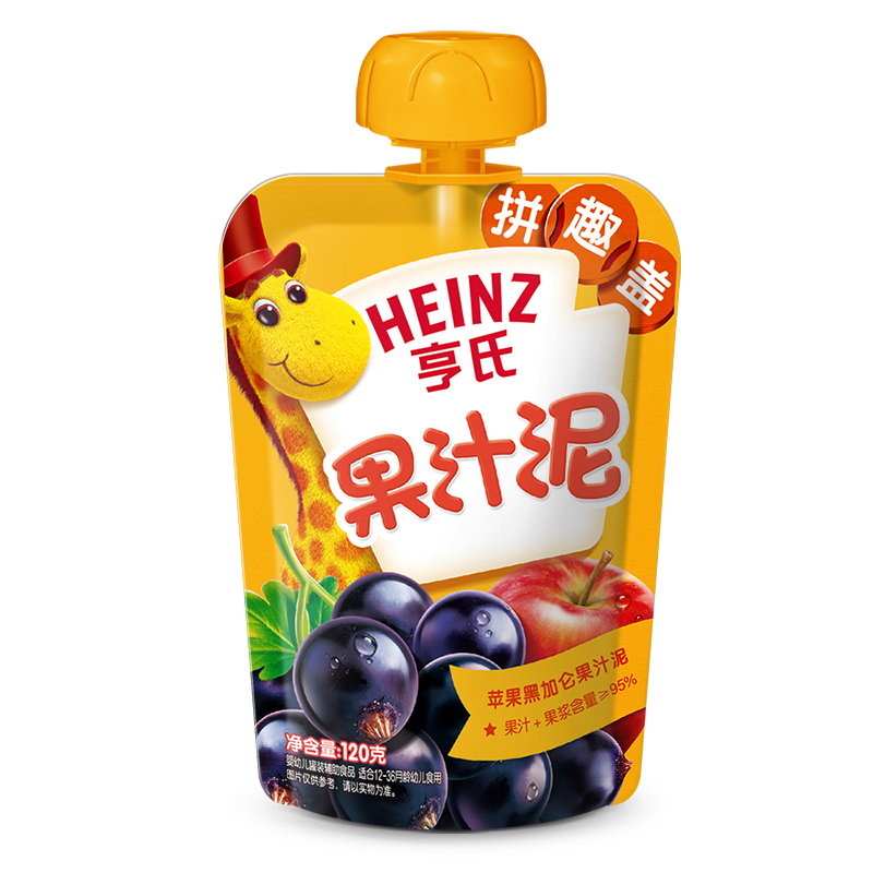 亨氏(Heinz)果汁泥 嬰兒水果泥寶寶輔食泥零食(1-3歲適用) 黑加侖蘋(píng)果120g