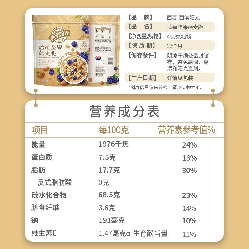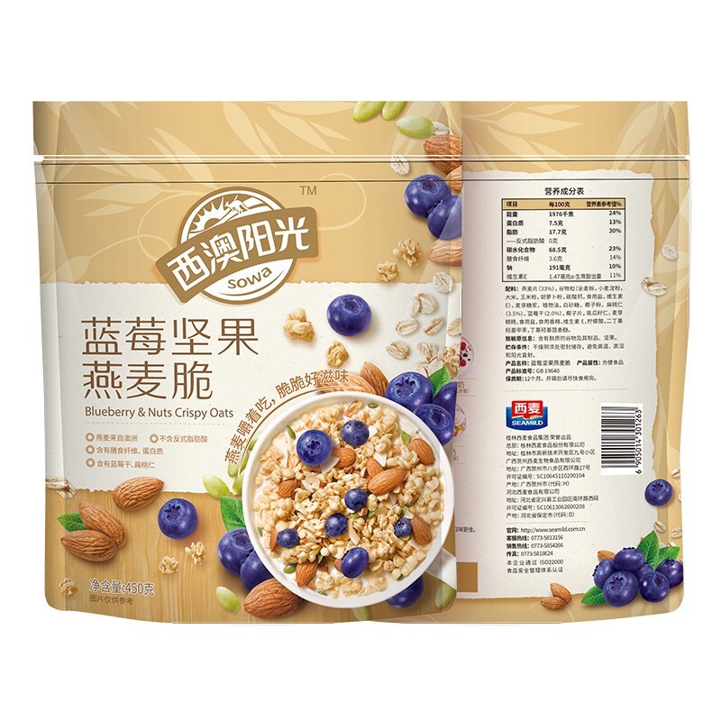 西麥西澳陽光藍(lán)莓堅果燕麥脆450g袋 即食干吃冷泡早餐谷物燕麥片代餐 藍(lán)莓堅果燕麥脆450g