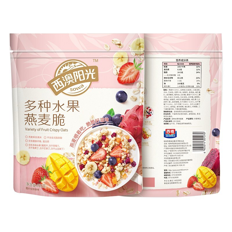 西麥西澳陽光藍(lán)莓多種水果450g袋 即食干吃冷泡早餐谷物燕麥片代餐 多種水果燕麥脆450g